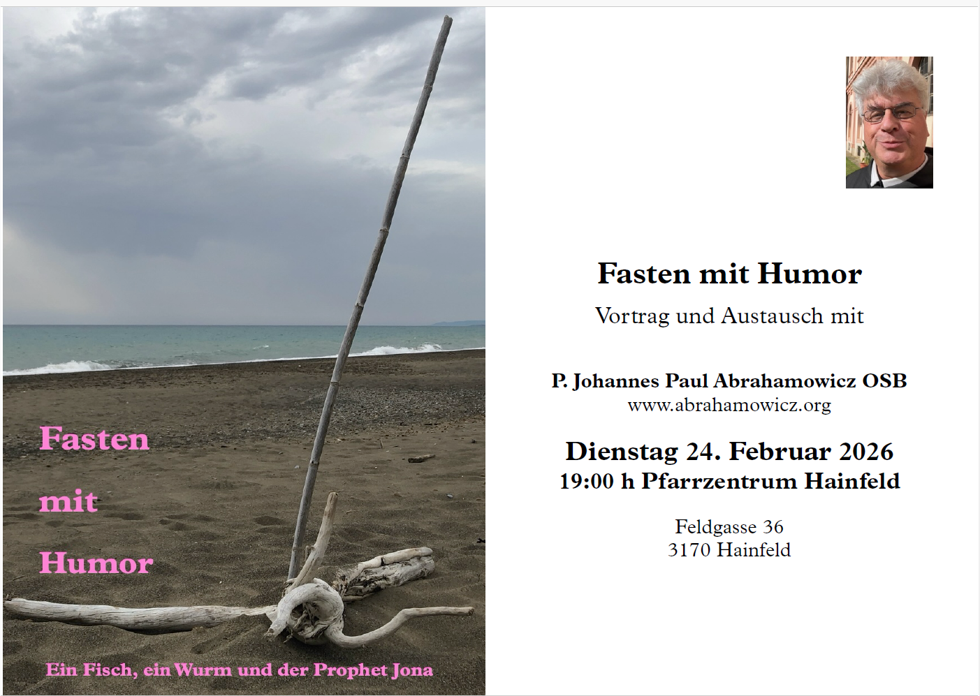 Vortrag und Austausch mit P. Johannes Paul Abrahamowicz OSB Fasten mit Humor Datei zum Herunterladen mehr: Fasten mit Humor