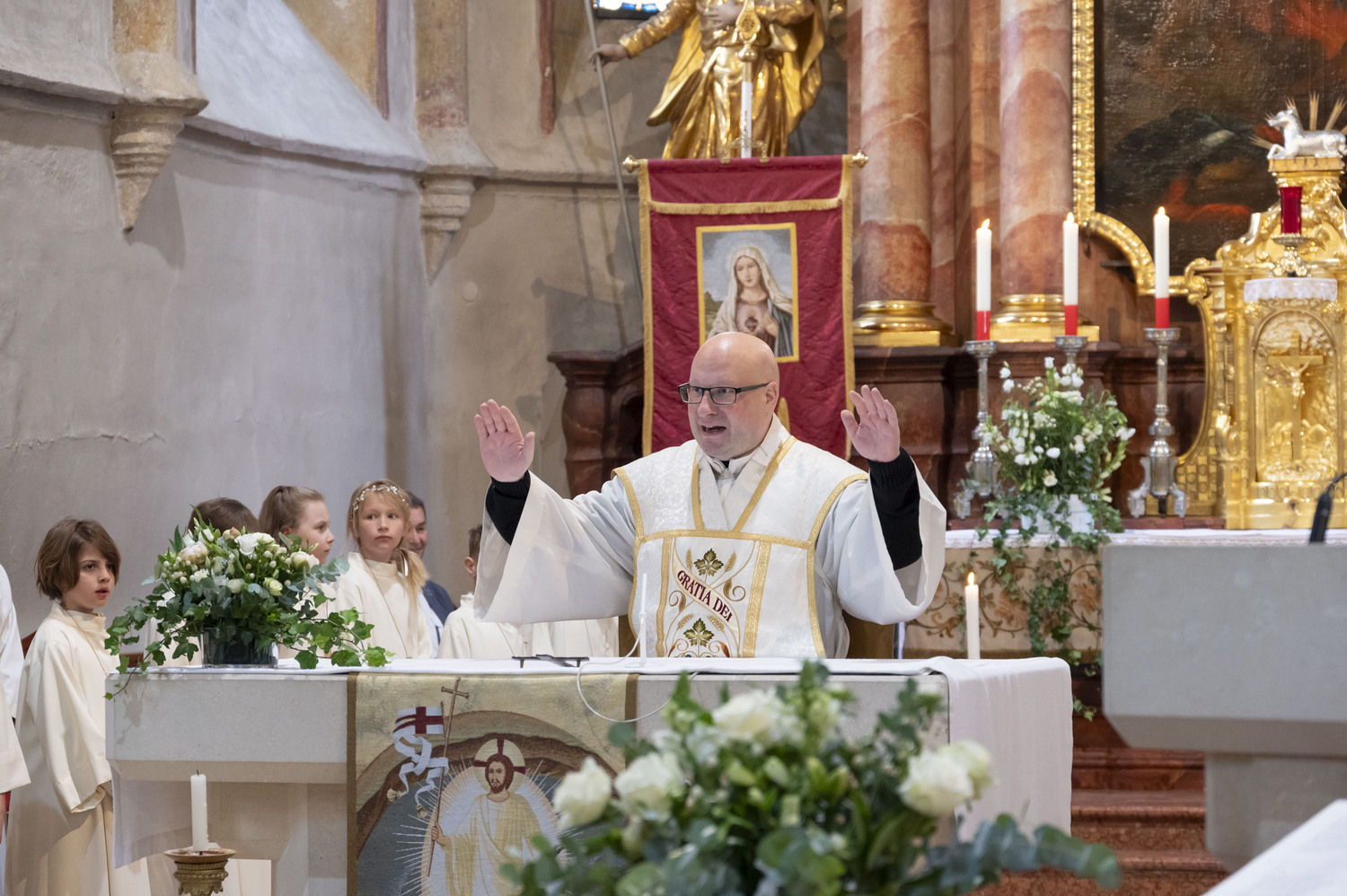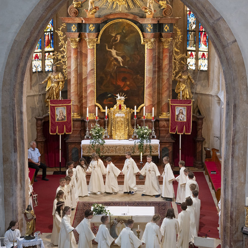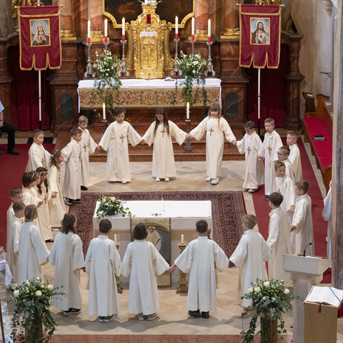 Am Sonntag 5. Mai feierten 25 Kinder mit Pfarrer P. Leonhard das Fest der Hl. Erstkommunion. Vorbereitet wurden sie von Pfarrer P. Leonhard, PAss. und Religionslehrer Mag. Wilhelm Erber mit den Erstkommunionmüttern auf dieses besondere Fest.